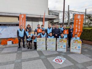 今朝は名鉄国府宮駅で、働く仲間の皆さんと啓発活動をしました。