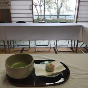 雨での開催でしたが、お茶席でいただいたお抹茶と饅頭は格別でした。