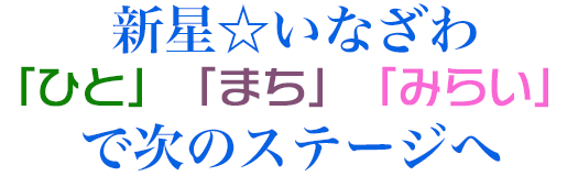 私が生まれ育った稲沢の「まち」、そこに住む「ひと」と「みらい」が「かがやく」まちづくりに挑戦して、「新星☆いなぎわ」を目指します。
